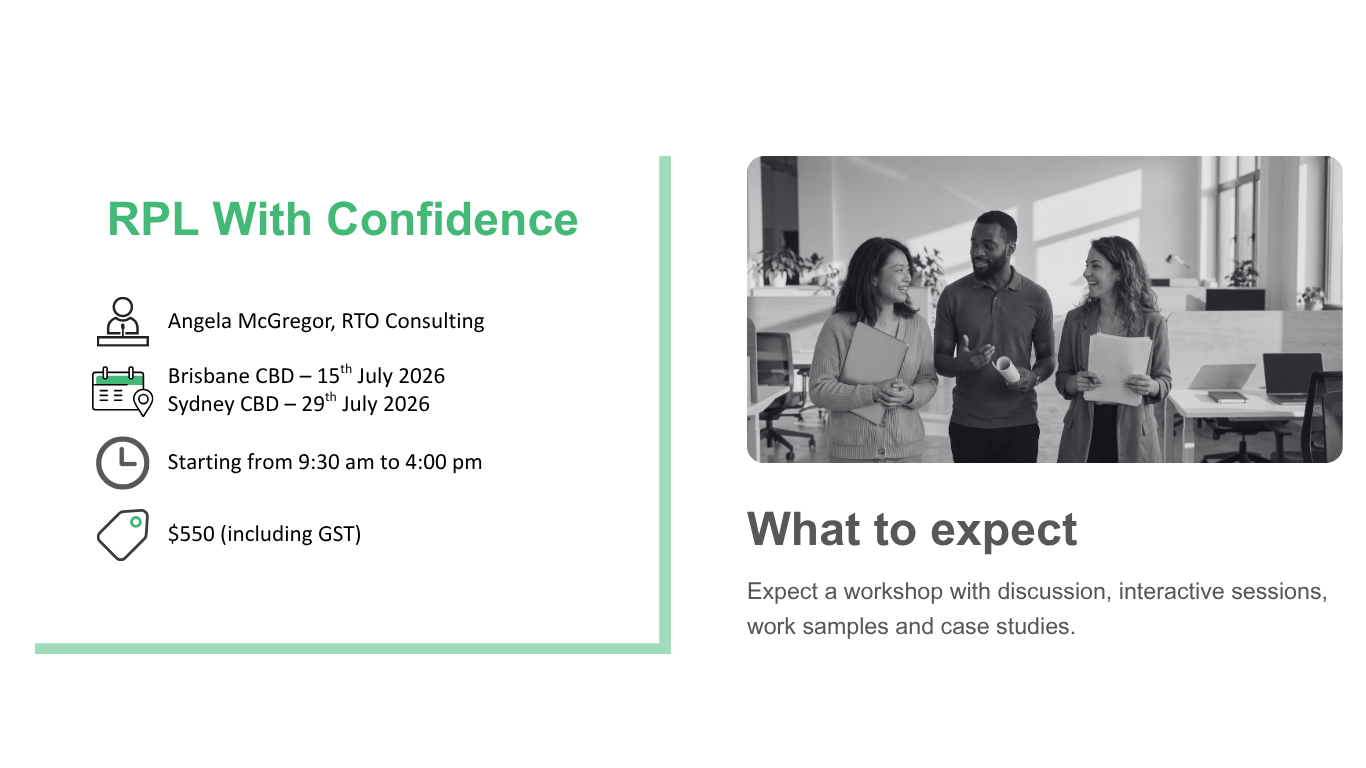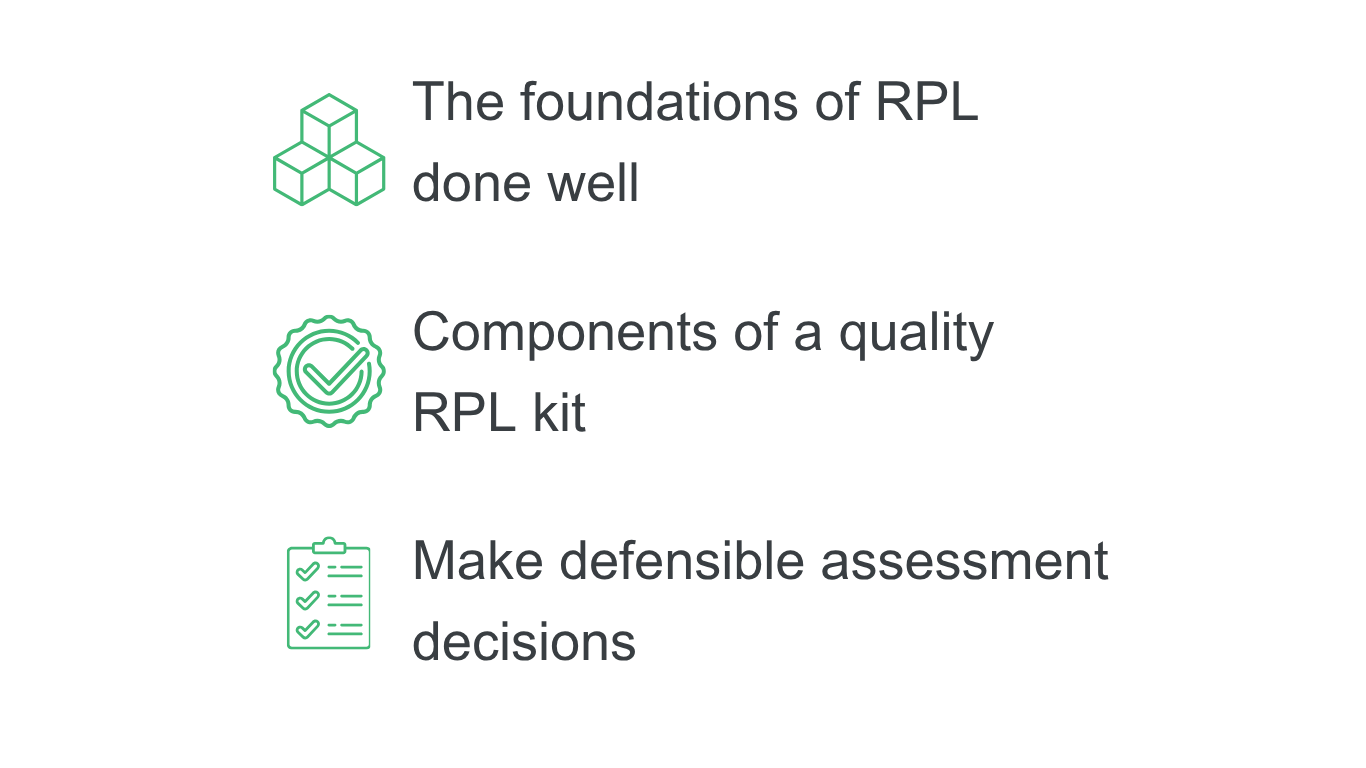 Equip assessors with the knowledge, skills, and confidence to conduct compliant, quality RPL assessments aligned with current practices and ASQA’s expectations.